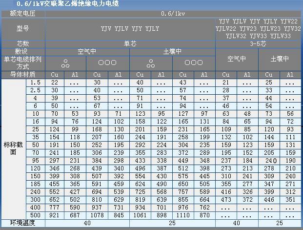 6平方铜电缆的安全载流量可查上表得50A。电缆的载流量和电缆绝缘形式、布线方式、敷设情况、环境温度等有关,可参考表中的各项条件确定。