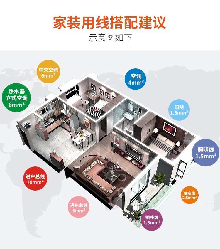 电线的规格,主要是指电线的截面积。常见的电线截面积有1.5平方毫米、2.5平方毫米、4平方毫米、6平方毫米等,选择时需要考虑电流大小、线路长度等因素: - 照明线路:一般建议使...