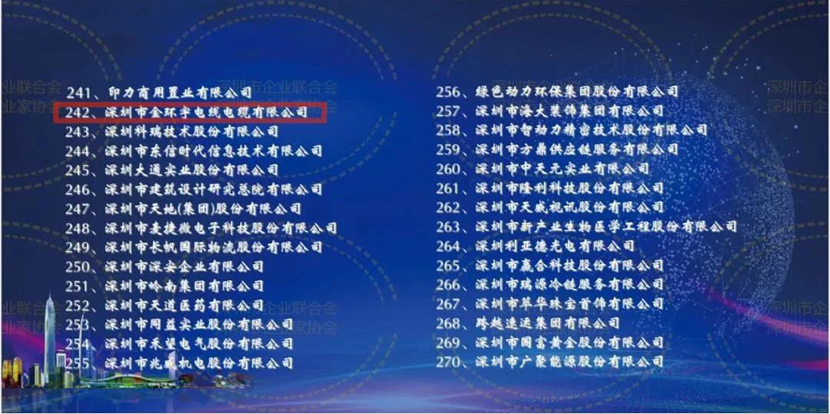 金环宇电线电缆凭借雄厚的企业实力和强劲的业绩发展,在榜单上位列242名。