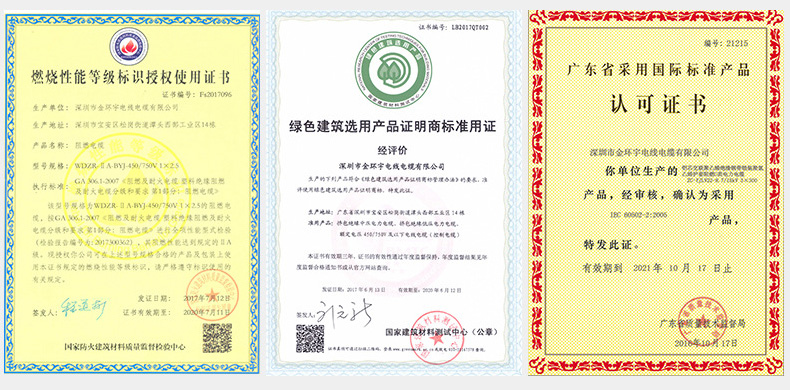 金环宇作为一家生产各种型号电力电缆、电线的专业厂家,随着生产工艺和技术的不断进步,逐步得到消费者的认可,是我国电线电缆一个知名的品牌,那么深圳市金环宇电线电缆都获得哪些认证。