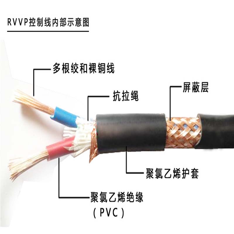 RVVP是一种软导体PVC绝缘线外加屏蔽层和PVC护套的电缆。RVVP7*0.5平方电缆是7根0.5平方铜芯聚氯乙烯绝缘外加屏蔽和聚氯乙烯护套做成的抗干扰软电缆。7芯编织屏蔽软电缆。
